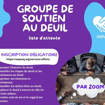 Nous créons un espace bienveillant où le partage d'expériences liées au deuil permet de tisser des liens profonds avec d'autres personnes qui traversent cette épreuve difficile. Ensemble, nous apprenons à naviguer dans les méandres du chagrin, à pratiquer l'auto-compassion face à la perte, et à discuter ouvertement des émotions et des défis qui accompagnent le processus de deuil. Dans ce groupe de soutien, vous trouverez un lieu sûr pour exprimer votre douleur, honorer la mémoire de vos proches disparus, et progressivement reconstruire votre vie tout en étant entouré de personnes qui comprennent véritablement ce que vous traversez